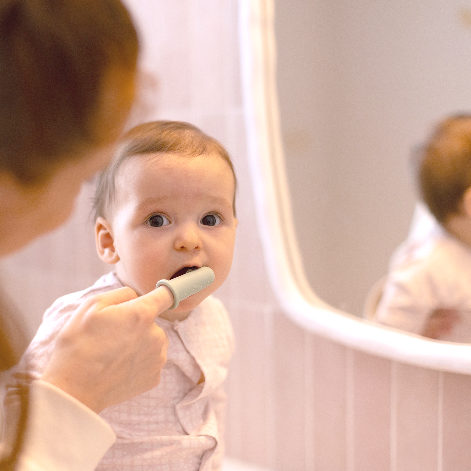 • Apply 5 drops to finger toothbrush or clean finger and gently massage baby’s gums.
